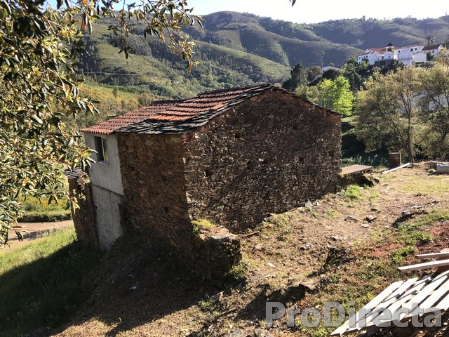 If you’re looking for a challenge you’ve just found it. 155m2 of working land to include a two storey schist cottage – registered at 44m2 on each level. No water, no electricity, no fossa. The traditional semi-detached building is in need of total renovation, but the location, a lively little village 20 minutes drive from the market town of Gois, makes it well worth the effort, and the low price, a very realistic proposition, particularly for someone with building skills. Access is not difficult, the land is good and the views are superb. Utilities are close by so connection would doubtless be possible; Internet could be provided by satellite, with a fossa/septic tank placed in a suitable position on the land. The alternatives are solar power and Compost Toileting, depending on your lifestyle preference, either would work perfectly well. The local village, a few minutes walk away, has a cafe/bar and mini-mart; there is a River Beach close by and plenty of events going on over the summer months. Full services can be found in that nearest town, including a selection of good places to eat and drink. The major cities of Coimbra, Porto and Lisbon are all within comfortable reach, as is the Silver Coast with its hidden beaches and very good surfing. Asking price: 9800 euros NB. the adjoining house (white in the photographs) is not inhabited.
