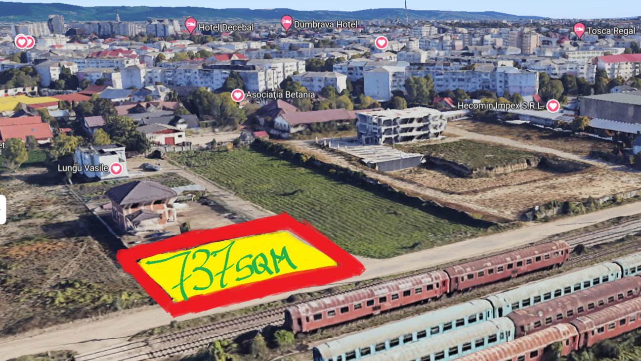 737 sqm Land for sale Str. Depoului Nord district, Downtown Bacau Romania, with all the utilities included, with a 27 meter front street opening, excellent for residential or industrial investment, 200 euro per square meter.
