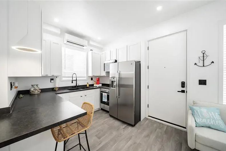 What is included in the Casita? The current Casita model includes the following: Full Size KitchenLarge Refrigerator, Double Sink, Oven, Stove, Microwave, Kitchen Cabinetry BathroomDeep shower, Vessel Sink, Large Counter, Backlit Mirror, Sliding Door, Toilet Living Space19ft x 19ft, 9’6” Ceilings, 8’ Huge Door & Windows, Wide Plank Composite Flooring, Combination Washer & Dryer, Highly Effective HVAC System, 100- Amp Electrical Box. Ultra-Low Utility BillHighly effective insulation & LED lighting.