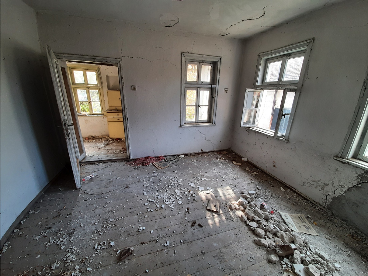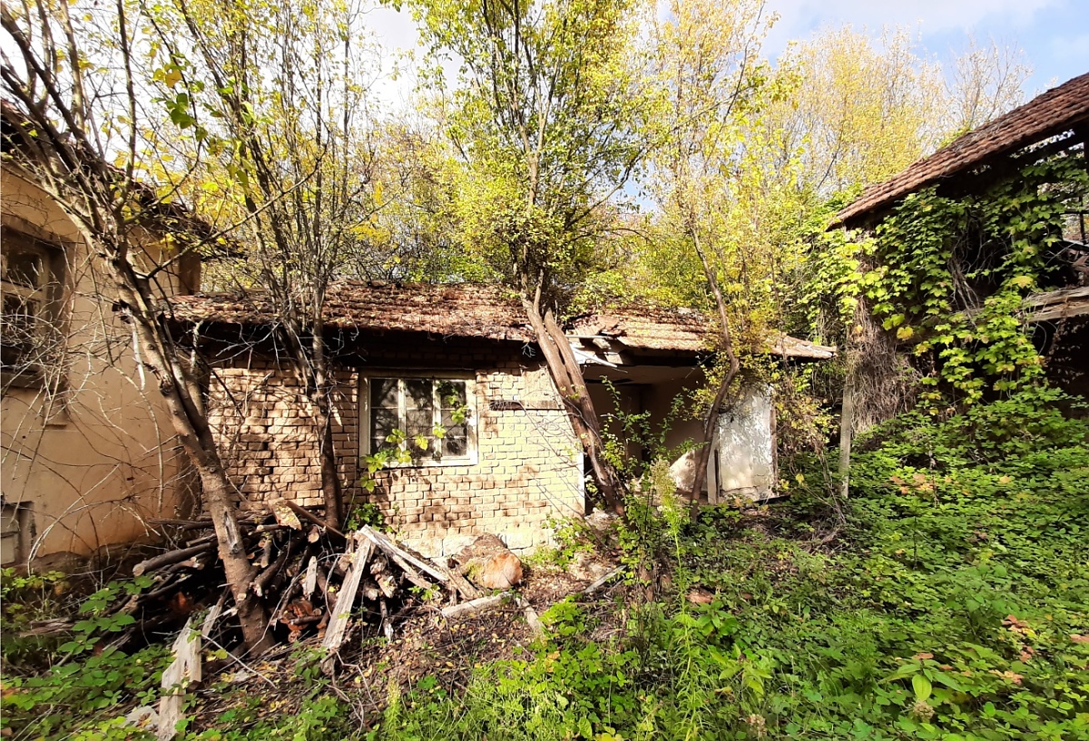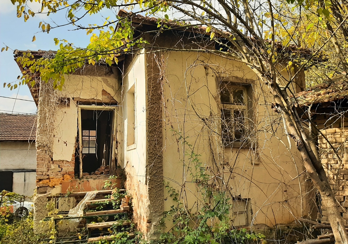Derelict rural property with barn, annex and plot of land located in a quiet spot within the limits of a mountain village 20 km away from ski and spa resort. The house has two floors connected via short external staircase. The ground level has three premises which used to be basement, storage room and workshop. The second floor has three more rooms which served as kitchen, living room and bedroom. The annex located behind the house had additional kitchen with dining area and one more room which served as living room and bedroom. Next to this building is the old barn which is a big structure with two floors having two premises downstairs and one vast open plan area upstairs. The buildings are located in an overgrown plot of regulated land which is situated less than 50 meters away from the main road, the mayor`s office and about 200 meters away from a small grocery store and café-bar. The property had been empty for more than two decades which caused its decay and as visible on the photos time took its heavy toll. Nevertheless, the quiet location of the property and its proximity to the oldest spa resort town in Bulgaria (20 km away from here), a local ski resort area (20 km away) and the national capital city Sofia (about 2 hours away by car) makes the place an interesting offer. The village where it is located is nice and is in a small valley surrounded by mountains and forest. One can enjoy plenty of peace, quiet, fresh air and great views here. In the summer days you can go to the forest and collect wild mushrooms and forest fruits, enjoy painting, photography or go hunting. The property requires certain amount of work, time and money to be invested in it but gives plenty of options. One can restore the big barn and turn it into a house, or restore both the existing house and the barn while transforming the annex into a workshop with garage. Plenty of options are available here depending on the skills, vision, desires and abilities of the new owner. Old property with potential at a good price. in a village Area: 800 m2 Living area: 120 m2 Price 12,000 euros