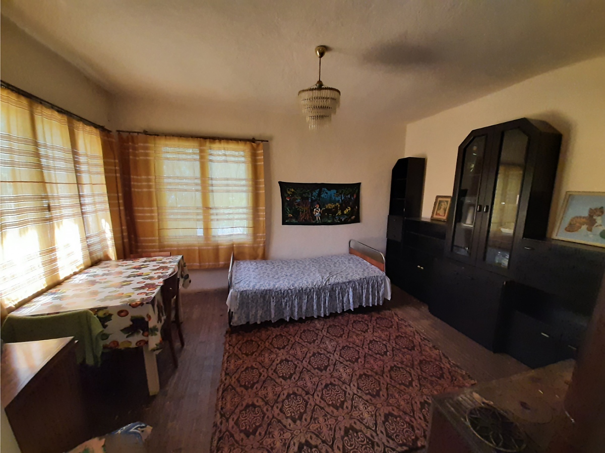 Country house with plot of land and quiet location situated in a big village near lake 45 km north of Vratsa, Bulgaria. The building has one floor which consists of kitchenette, common room, living room and bedroom. There is also a storage room beneath a section of the house. The plot of land is moderate by size and has a couple of fruit trees, a few vines and some open space. At the far end one can find an old storage building. The property has running water and electricity as well as its own free water source – a fresh water well. In the past it was used in the household but its last use was as a source for watering the garden. The soil in the area is very fertile so those who like gardening will be pleased with the conditions provided. The house is situated in a quiet side street about five minutes away by foot from the center of the village, the main square, post office, mayor`s office, shops, café-bars. The village where this property is situated is one of the biggest in the area and is at about ten minutes of driving away from a small town where you can find bank branch, ATM, gas station, car service station, construction material store, police station, doctor, dentist, school, kindergarten, library, etc. The regional capital city Vratsa is about 40 minutes away from here while Sofia and Sofia International Airport are about two hours away. Tidy, little countryside property with quiet location and plot of fertile land up for sale.