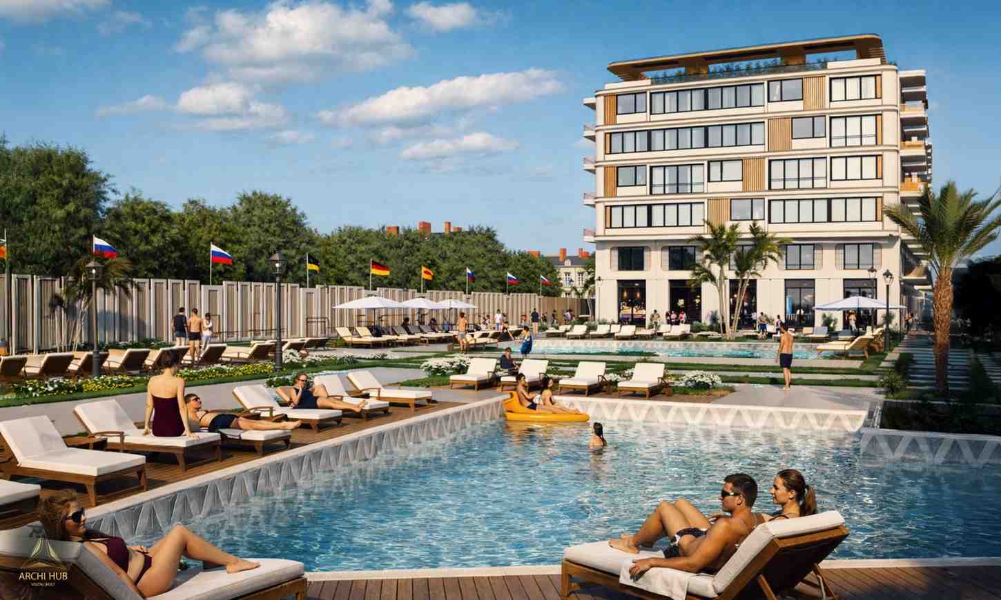 Beachfront 1BR Apartment, Pool view– Lavanda Suites
